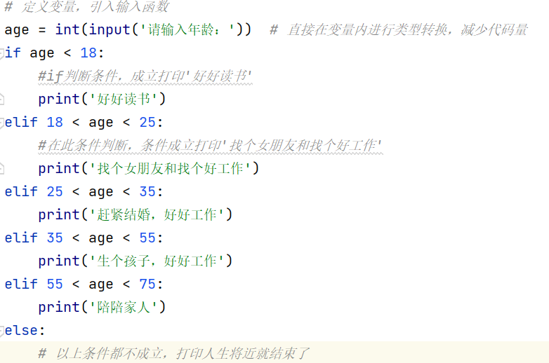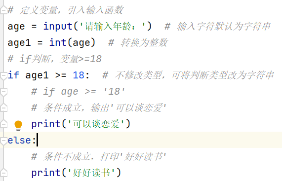 if 进行条件判断,条件成立,打印条件成立结果;条件不成立,使用 else打印条件不成立结果