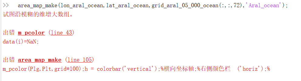 出错原因:经纬度出错,即输入的经纬度与绘图数值矩阵维度不匹配,检查即可改正。