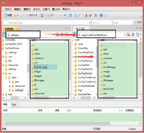 2、用xftp将打包代码文件CucPayPerson.tar.gz上传到以上目录