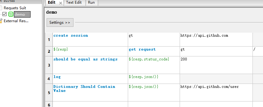 HTTP接口测试需要用到RequestsLibrary库,它是Request针对这个框架开发的一个库,该库的使用参照官网:https://github.com/bulkan/robotframework-requests