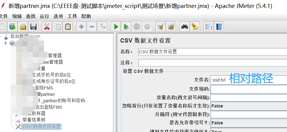 out.txt文件 与 新增partner.jmx脚本,在同一目录下时