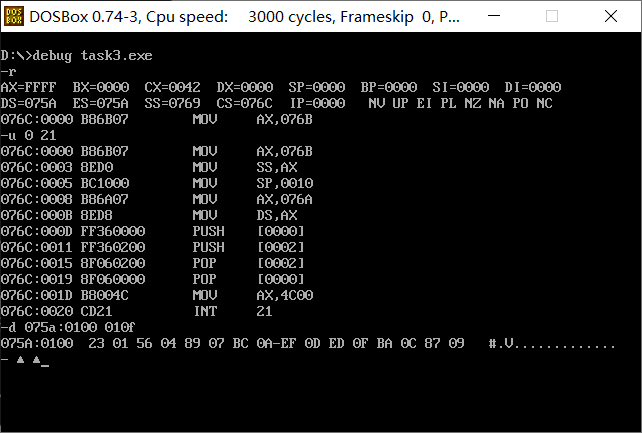 2.CPU执行程序,程序返回前,cs=076ch,ss=076bh,ds=076ah