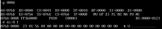 -g 1d 执行程序,得到 cs=076ch,ss=076bh,ds=076ah
