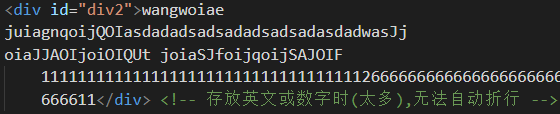 但输入过多的英文单词或数字时,他会超出所设置边框,即无法自动折行: