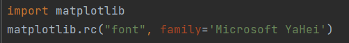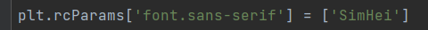 从运行结果可以发现一些中文的语言格式,则可以通过插入下图代码(需在函数subplots()之前),把语言设置成Microsoft YaHei(微软雅黑)。