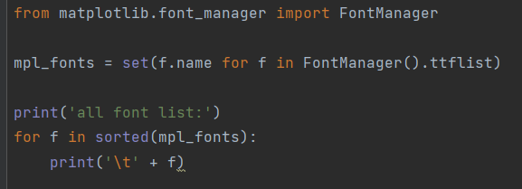 先查一下matplotlib中有哪些语言,实现代码如下: