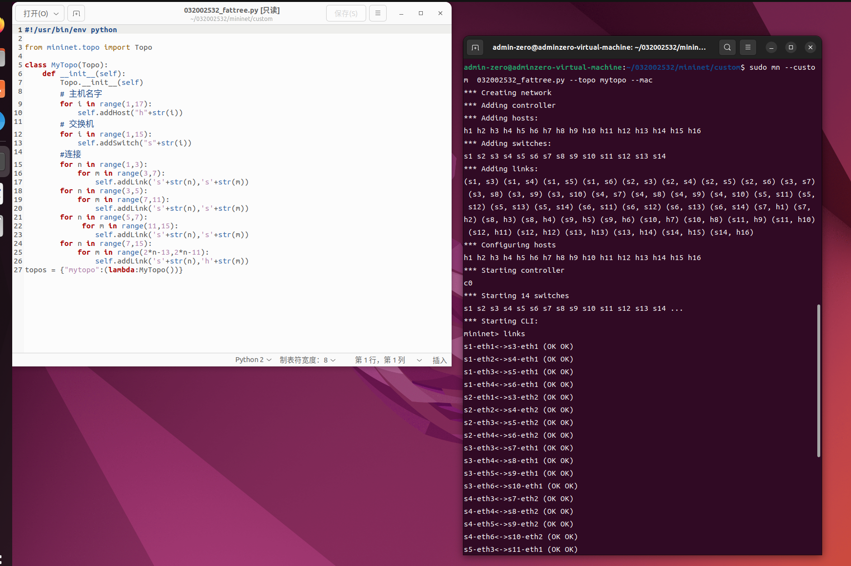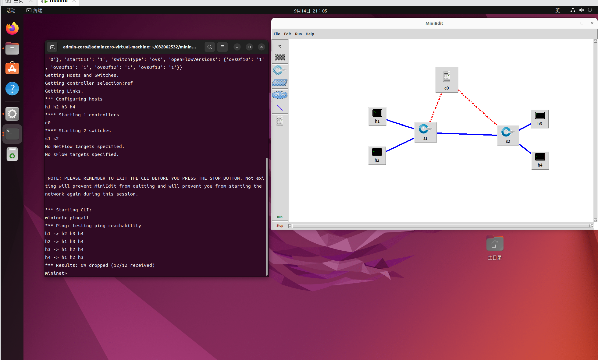 其间也遇到很多小插曲,比如之前安装的放在以学号为名的文件夹中的mininet等文件全部不见了,也无法找回,后来告知老师,老师建议重新安装从头来做,当时是感到有点绝望的,毕竟之前安装花了我好多时间精力,磕磕碰碰才完成的。好在在同学们的帮助下又较快的安装成功了,同时我在做这个实验过程中,也遇到了很多小问题,但通过上网查找解决方法以及询问同学,解决了这些问题,毋庸置疑,他们给予了我很多帮助,同时也表明,我解决问题的能力还有待加强。