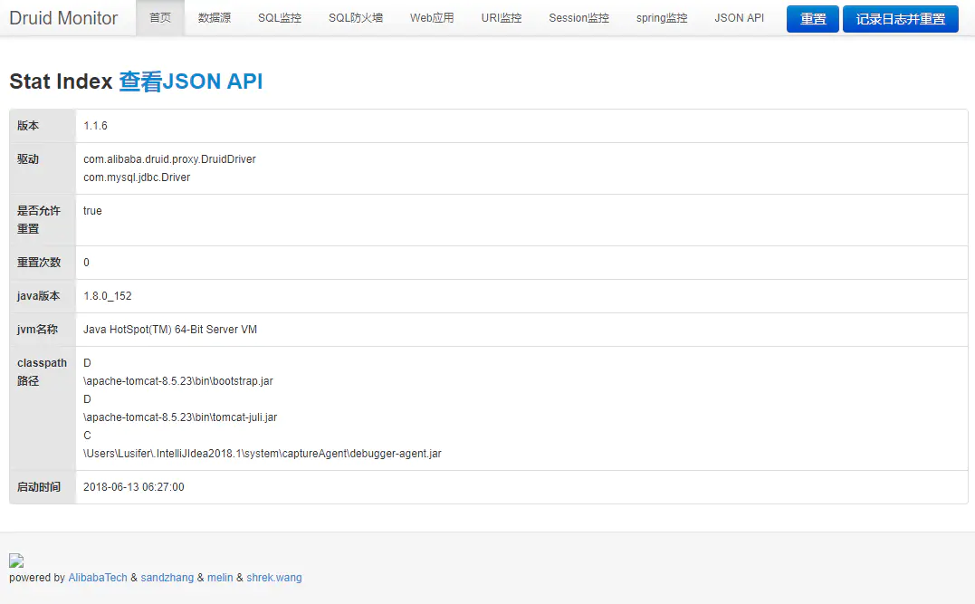 打开浏览器,输入:http://localhost:8080/druid/index.html 浏览器显示效果如下: