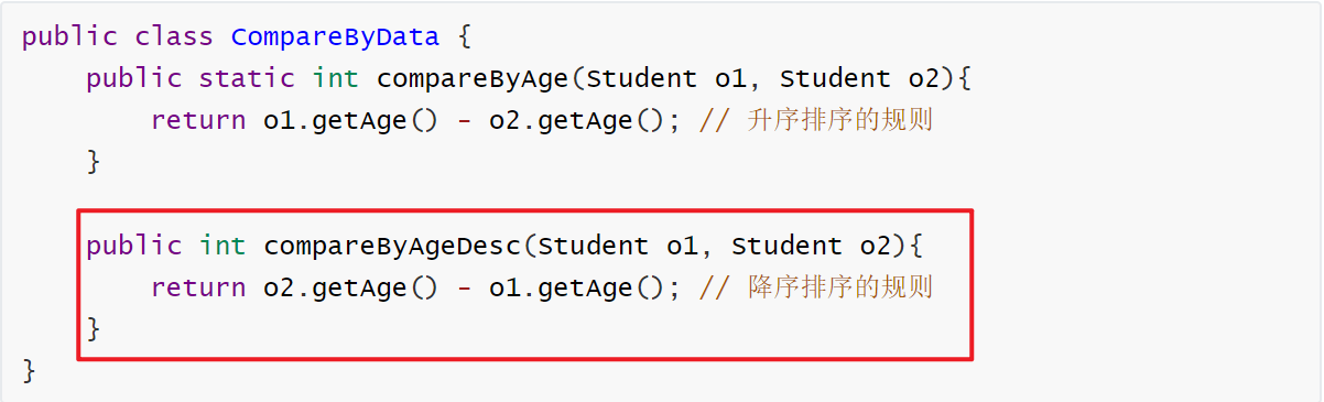 // 制定比较规则了:左边对象 o1 右边对象 o2