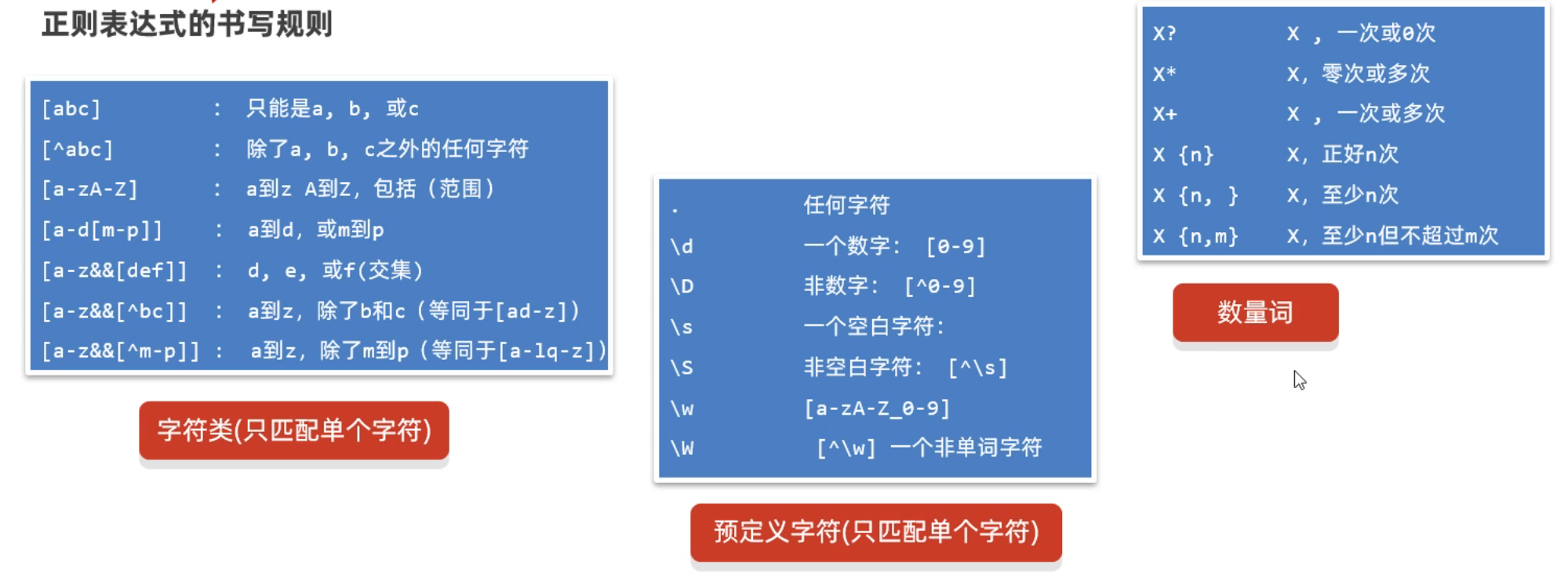 System.out.println("23232".matches("\\d")); // false 注意:以上预定义字符都只能匹配单个字符。