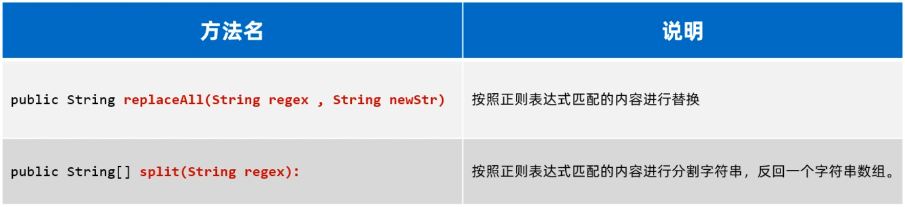 // 1、public String replaceAll(String regex , String newStr):按照正则表达式匹配的内容进行替换