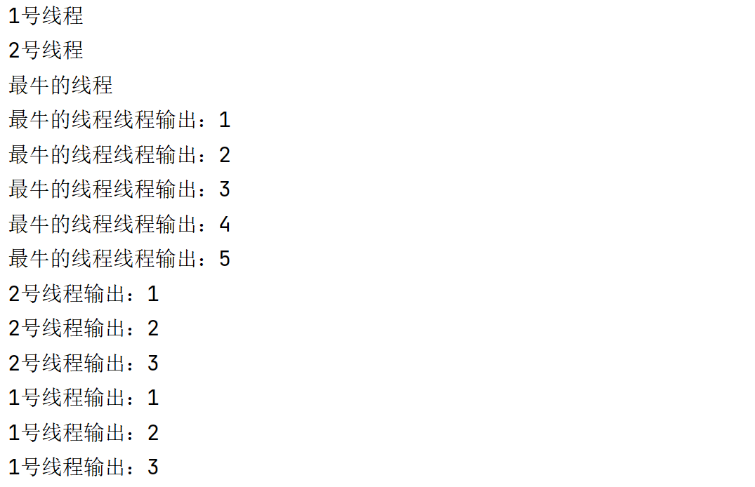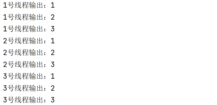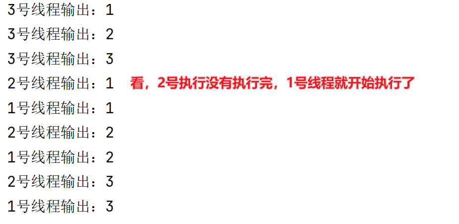 执行效果是1号线程先执行完,再执行2号线程;2号线程执行完,再执行3号线程;3号线程执行完就结束了。