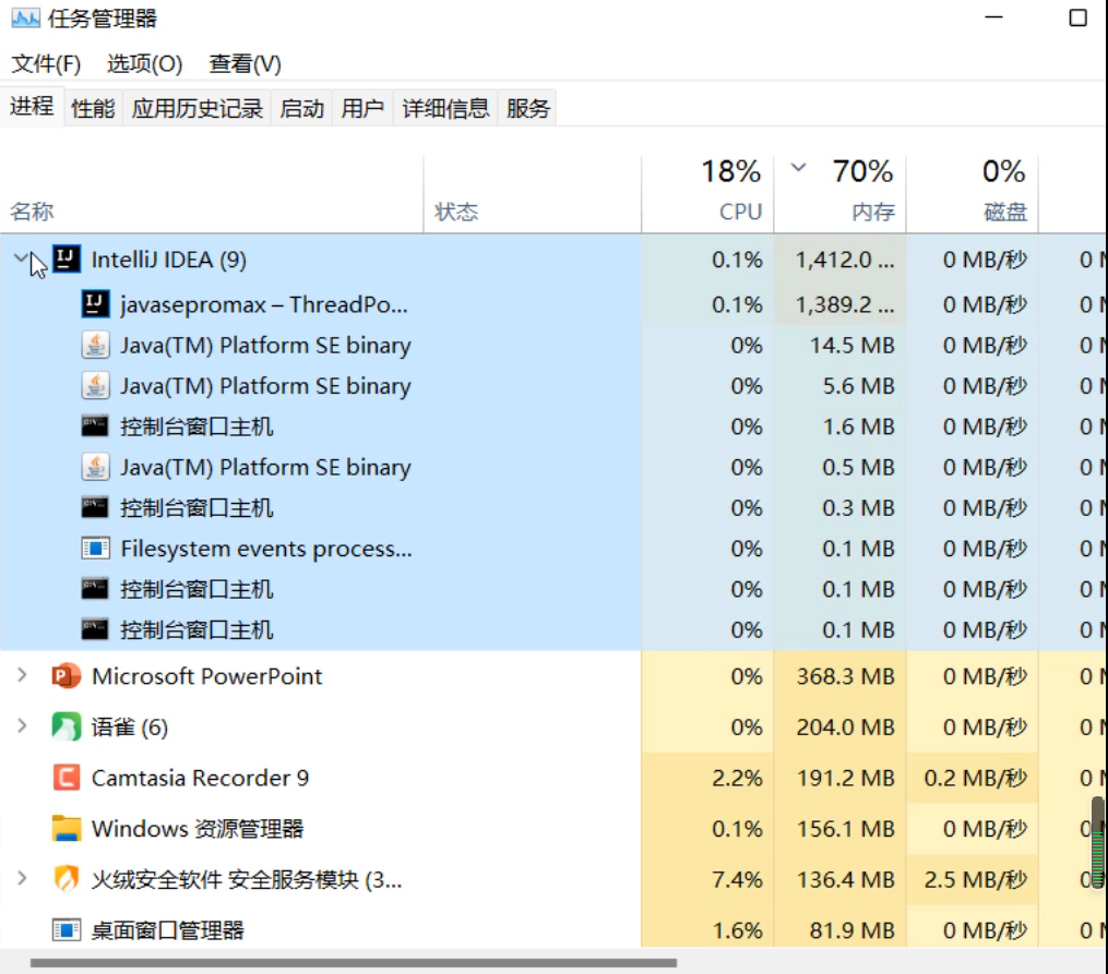 我们可以打开系统的任务管理器看看(快捷键:Ctrl+Shfit+Esc),自己的电脑上目前有哪些进程。