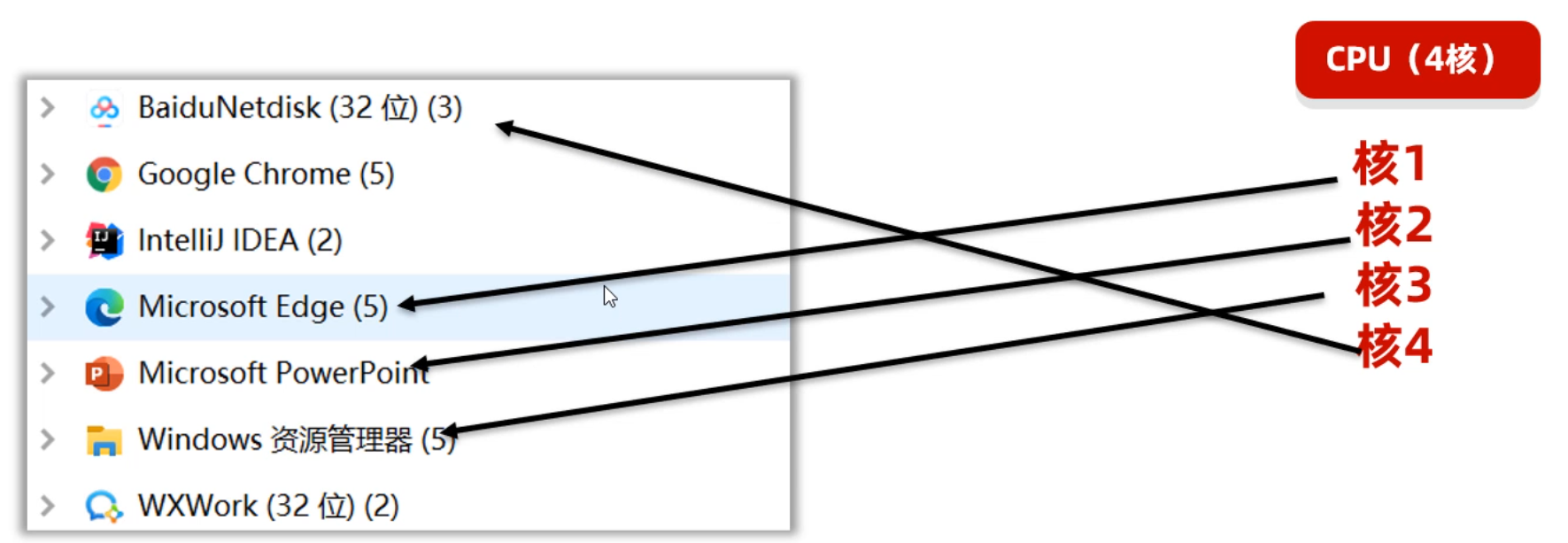- 进程中的线程其实并发和并行同时存在(继续往下看)