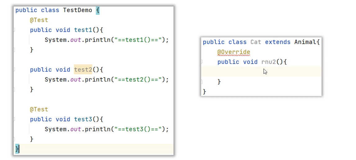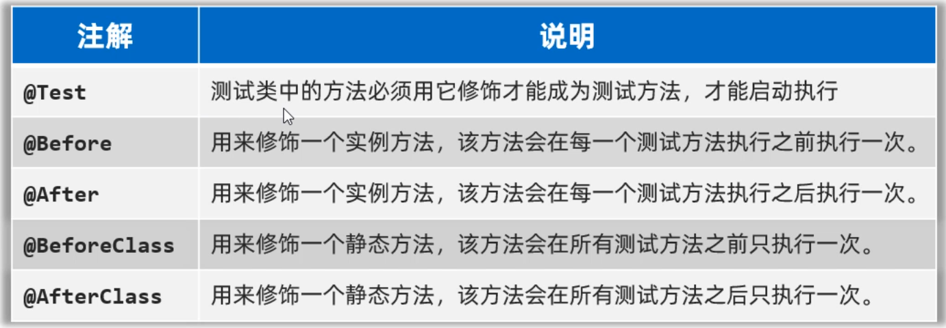 同学们,刚才我们以及学习了@Test注解,可以用来标记一个方法为测试方法,测试才能启动执行。