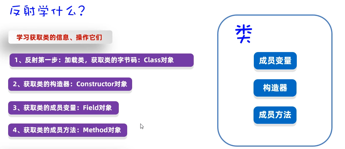 好了,认识了反射是什么之后,接下来我还想给同学们介绍一下反射具体学什么?