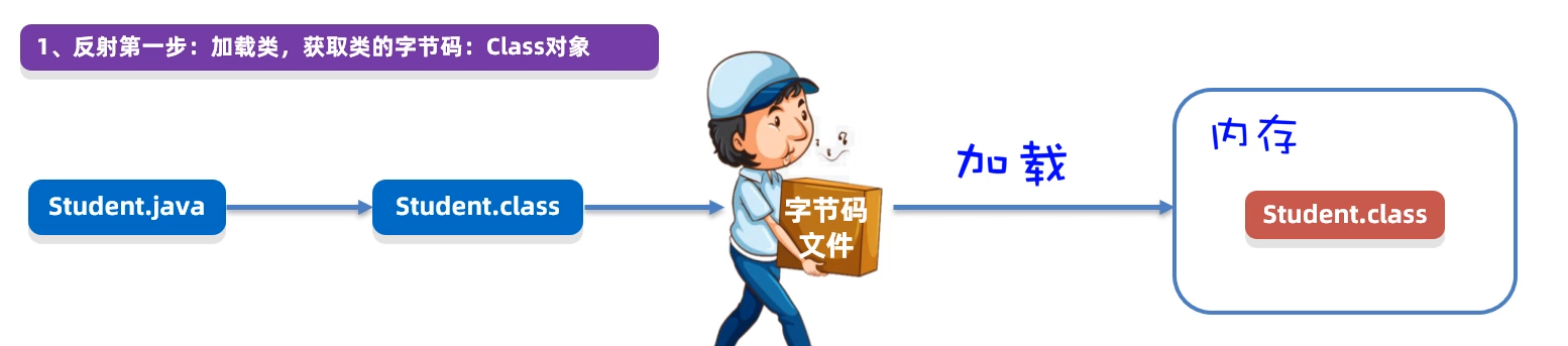 反射的第一步:是将字节码加载到内存,我们需要获取到的字节码对象。