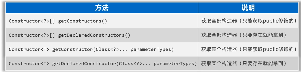 获取构造器,需要用到Class类提供的几个方法,如下图所示: