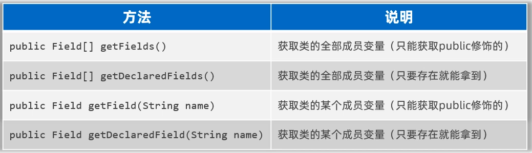 因为反射获取的是类的信息,那么反射的第一步首先获取到类才行。由于Java的设计原则是万物皆对象,获取到的类其实也是以对象的形式体现的,叫字节码对象,用Class类来表示。获取到字节码对象之后,再通过字节码对象就可以获取到类的组成成分了,这些组成成分其实也是对象,其中每一个成员变量用Field类的对象来表示、每一个成员方法用Method类的对象来表示,每一个构造器用Constructor类的对象来表示。