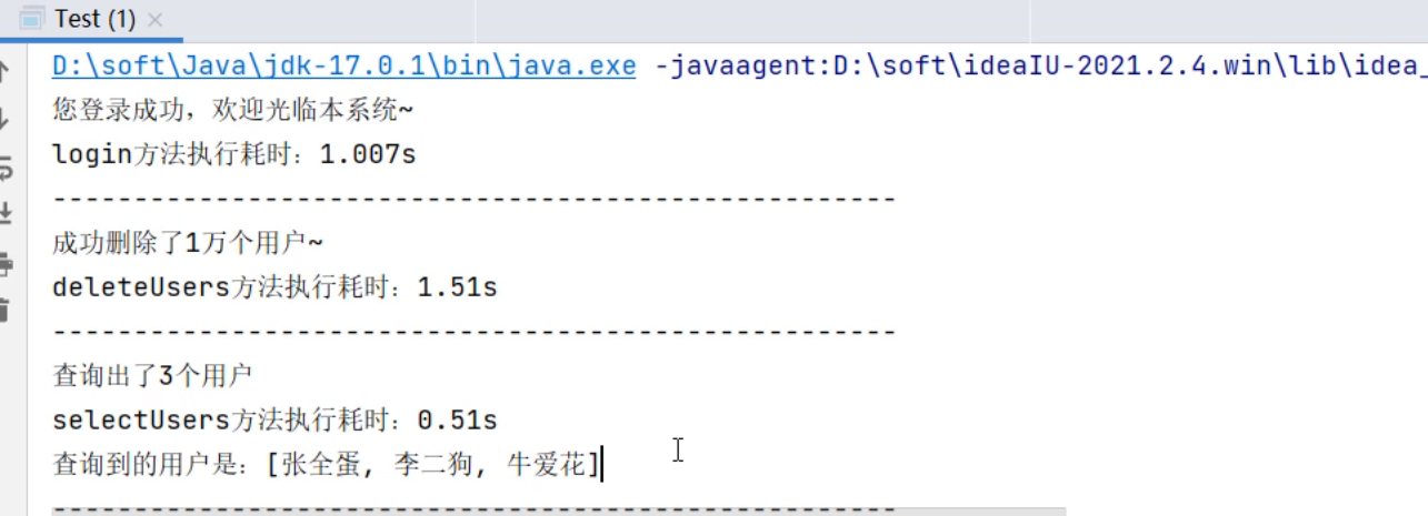 System.out.println("selectUsers方法耗时:"+(time2-time1));