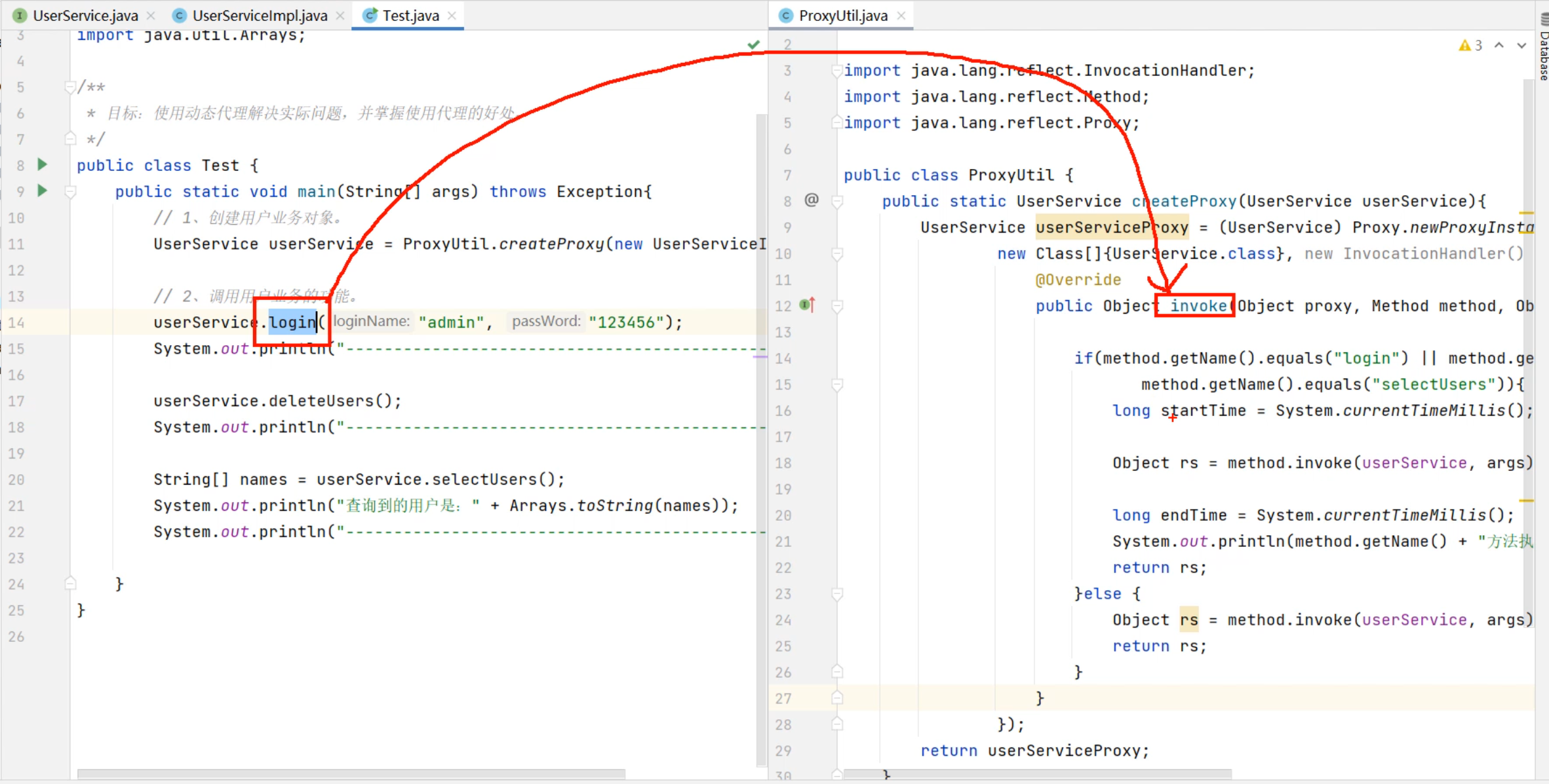 UserService userService = ProxyUtil.createProxy(new UserServiceImpl());
