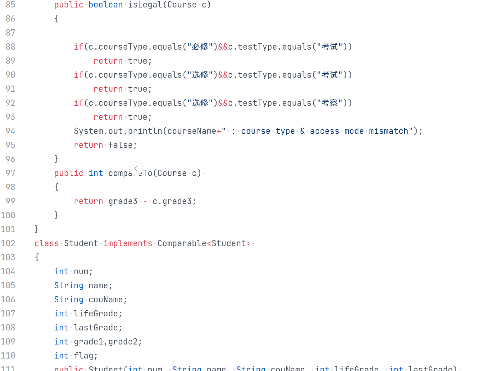 - CourseGrade:表示课程成绩,包含课程名称、课程性质、考核方式、分项成绩等信息,以及对应的学生成绩列表。