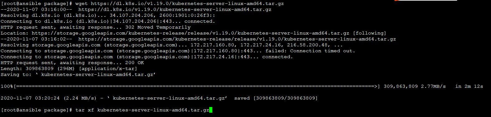 [root@ansible package]# wget https://github.com/etcd-io/etcd/releases/download/v3.4.13/etcd-v3.4.13-linux-amd64.tar.gz