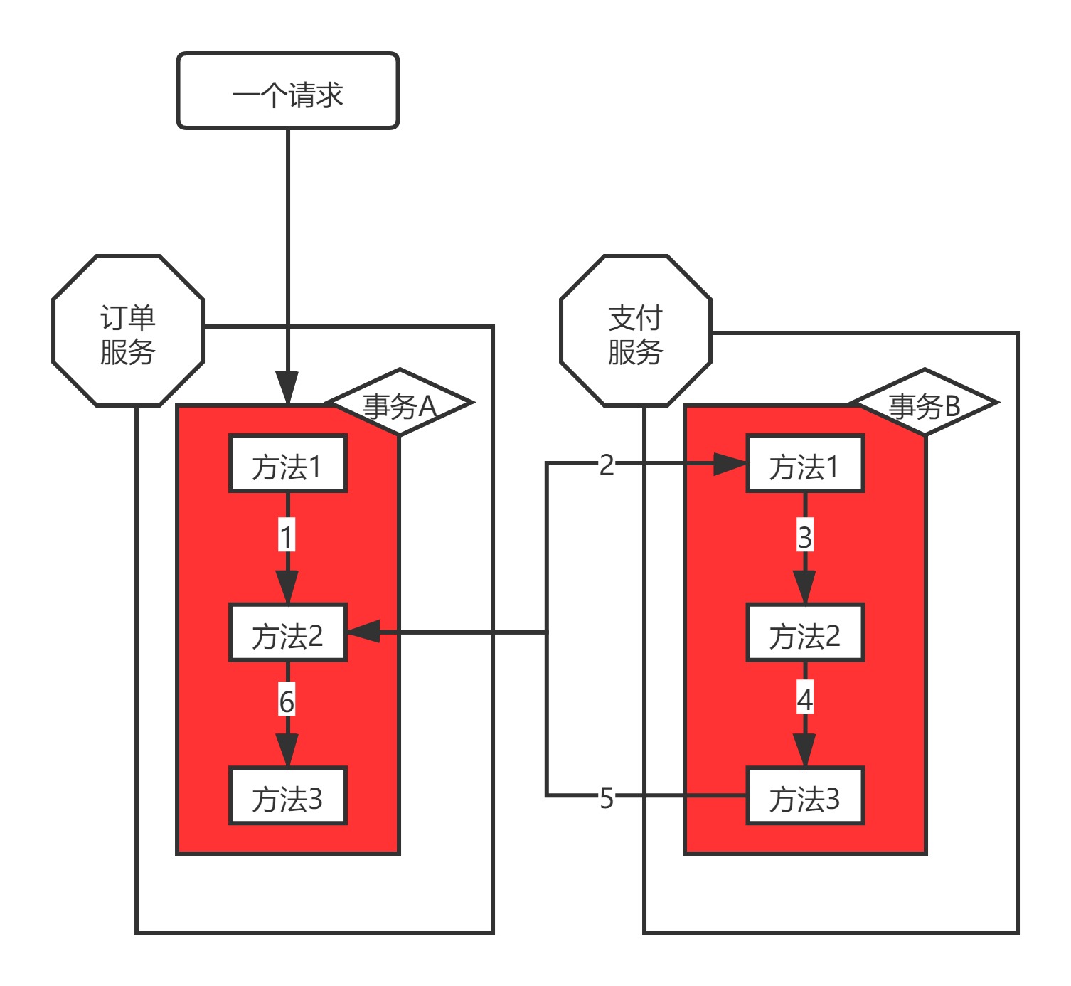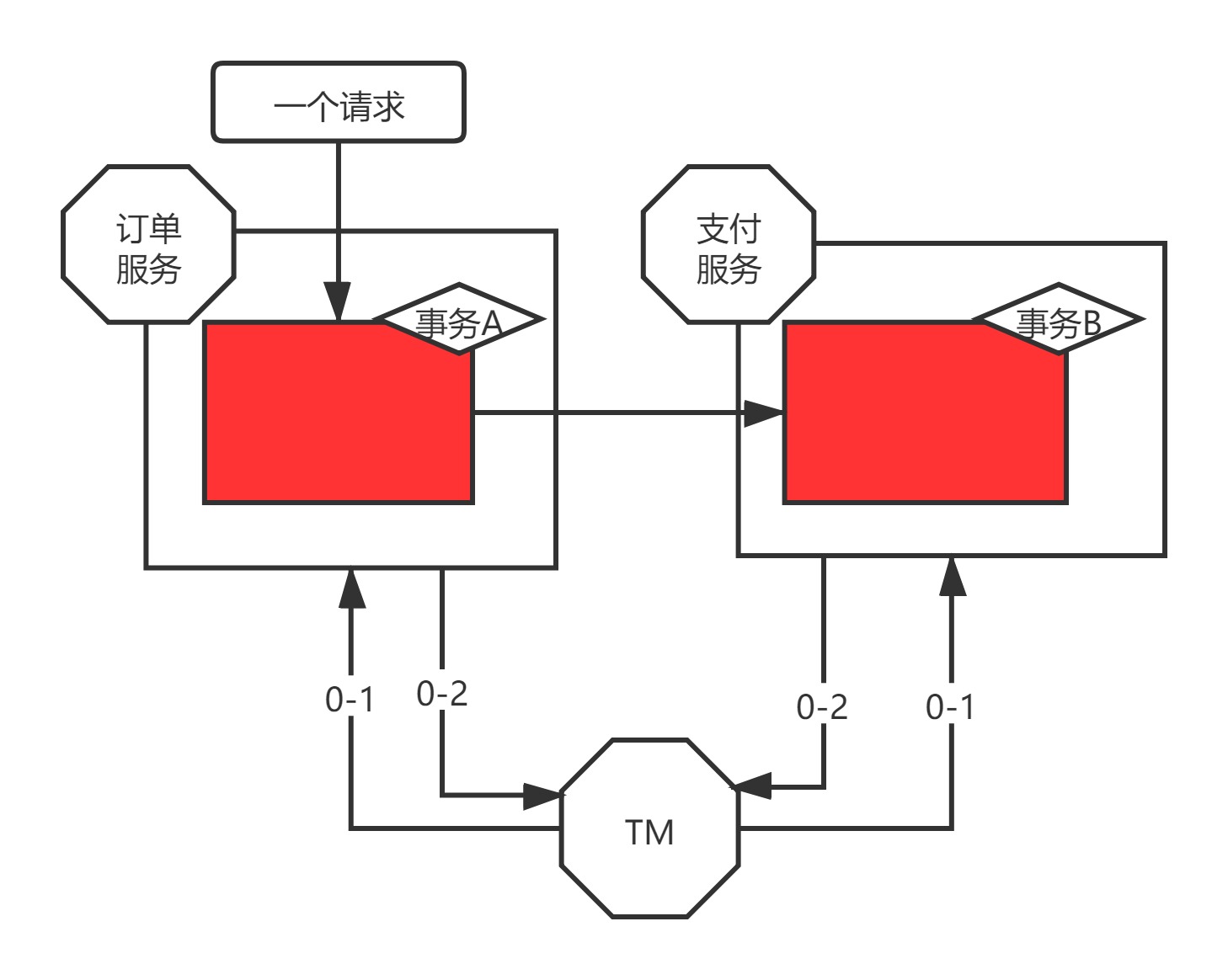 2:如果事务A在执行时出现异常,会返回执行状态(异常),如果执行正常,事务A执行会返回执行状态(正常);事务A同理