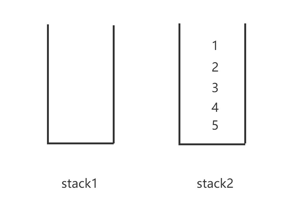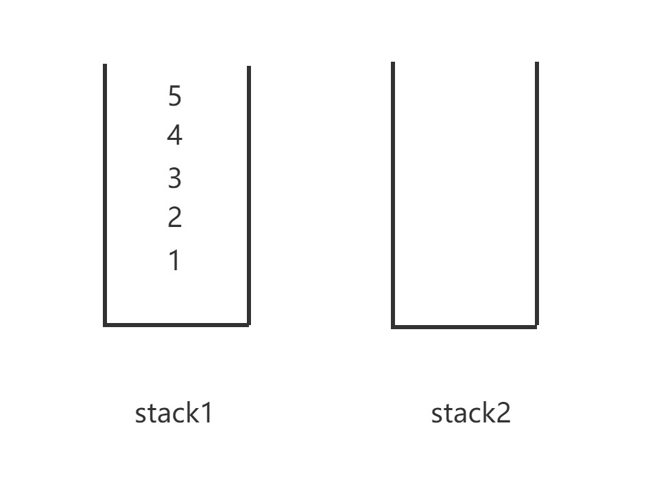 注:stack1里的的数据一定要一起出栈;stack2中有数据stack1里的的数据不能出栈