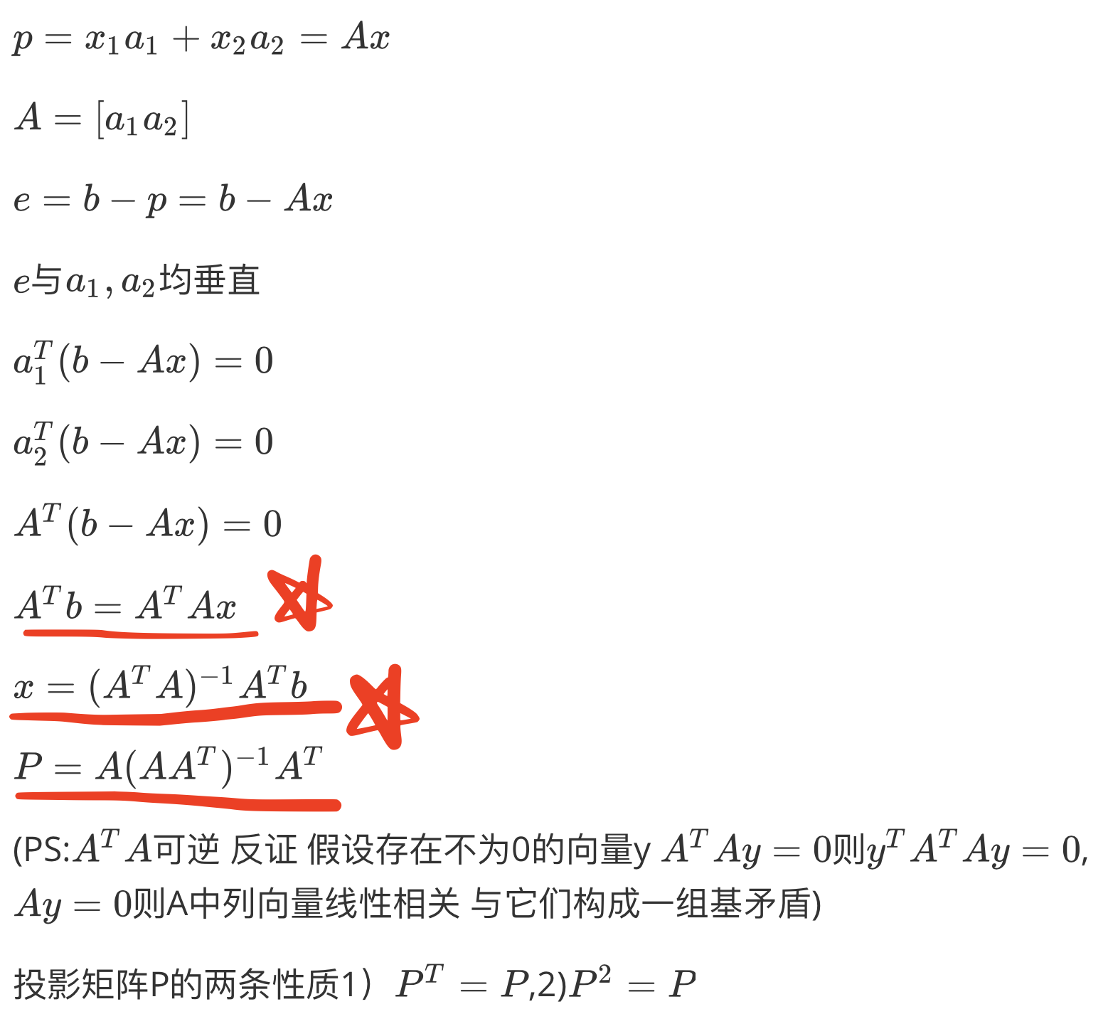 向量b投影到a1,a2张成的平面 投影为p e为误差向量