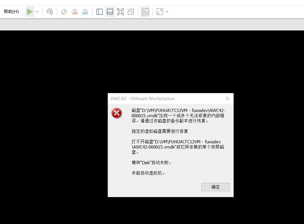 网上尝试了很多办法,也没有启动成功 1、利用命令行修复vmdk文件 2、给虚拟机新增一个硬盘也不行 3、把好的vmdk替换这个也不行