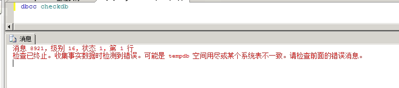 检查已终止。收集事实数据时检测到错误。可能是 tempdb 空间用尽或某个系统表不一致。请检查前面的错误消息。