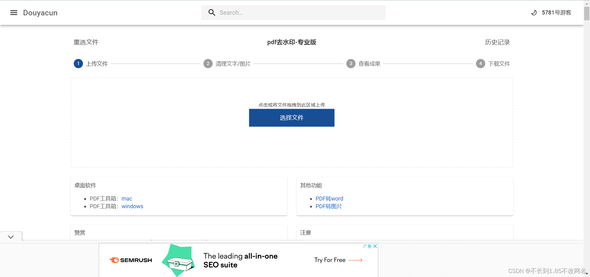 这是一个在线可以去除PDF文件水印的一个网址