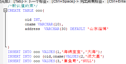 作用: 当用户对使用默认值的字段不插入值的时候,就使用默认值。