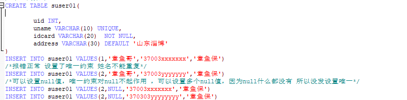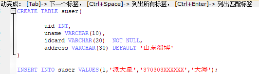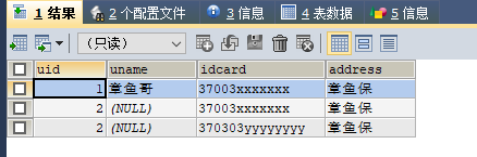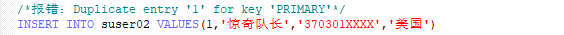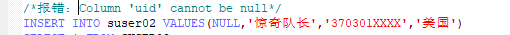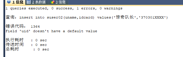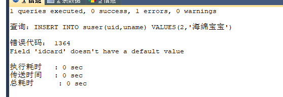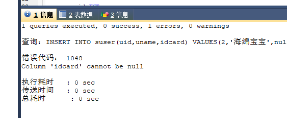 因为我们在idcard字段设置了一个非空函数(not null)所以报错。