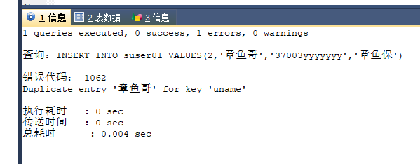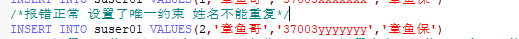 因为我们设置了唯一约数 所以 没法再有第二个一样的字段了。