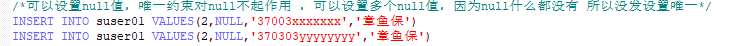 解析:可以设置多个null 因为null代表这空有很多种可能 所以可以多个null。