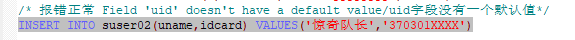 解析:就是你的uid字段没有一个默认值的值 (因为你在id设置了主键(非空加唯一))