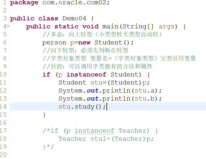 当不需要面对子类类型时,通过提高扩展性,或者使用父类的功能就能完成相应的操作,这时就可以使用向上转型。