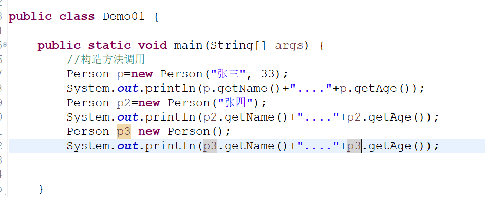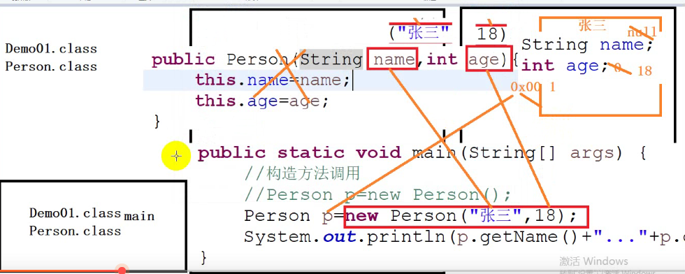 构造方法的代码体现: