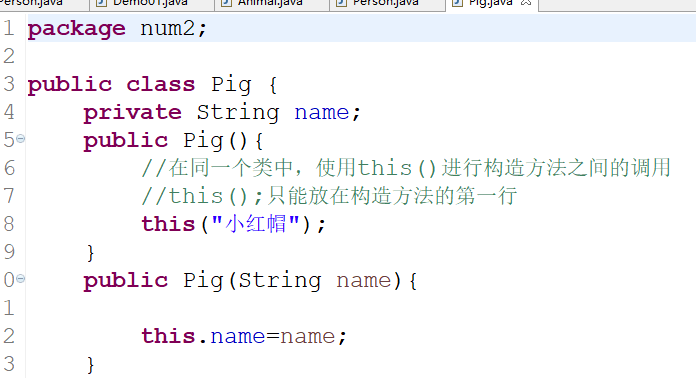 this():在同一个类中使用this() 实现构造方法之间的调用