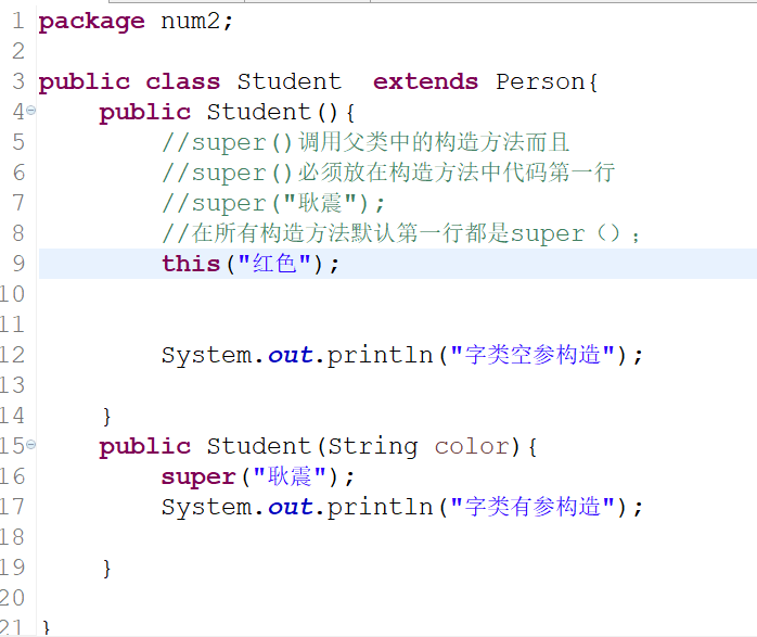 如果默认的隐式super()语句在父类中没有对应的构造方法,那么必须在构造方法中通过this或者super的形式明确要调用的构造方法。