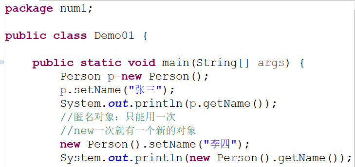 2. 匿名对象在没有指定其引用变量时,只能使用一次。