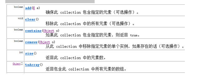 Collection 层次结构中的根接口。Collection 表示一组对象,这些对象也称为 collection 的元素。