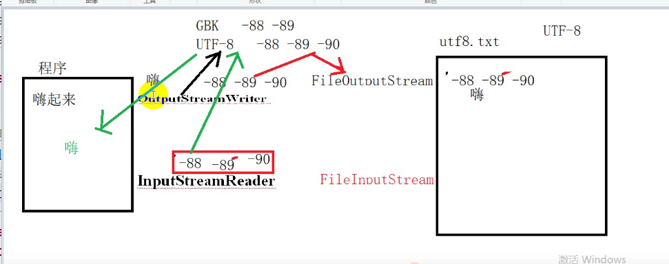 如果是utf-8的话 就用转换流OutputStreamWrite(写)和nputStreamReader(读)