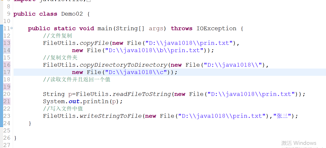 writeStringToFile(File file,String content):将内容content写入到file中;