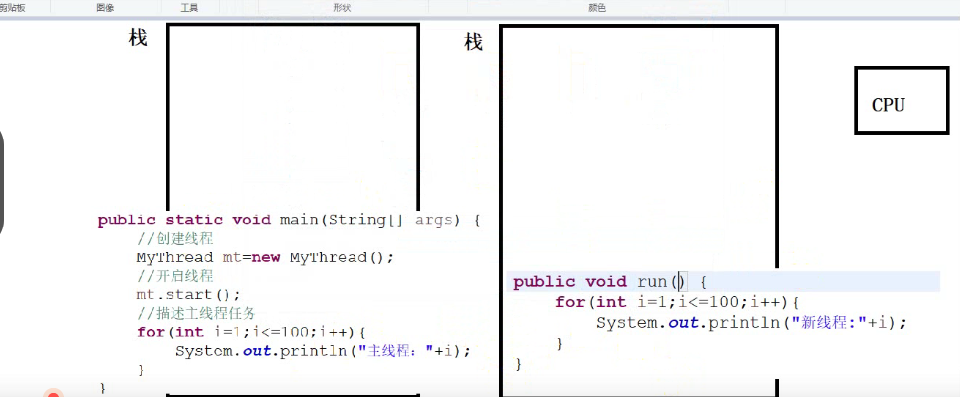 实际上,CPU(中央处理器)使用抢占式调度模式在多个线程间进行着高速的切换。对于CPU的一个核而言,某个时刻,只能执行一个线程,