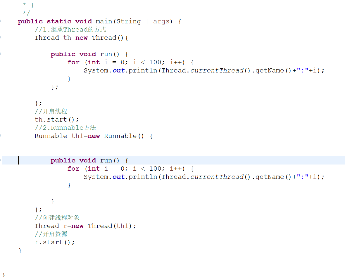 第二种方式实现Runnable接口避免了单继承的局限性,所以较为常用。实现Runnable接口的方式,更加的符合面向对象,线程分为两部分,一部分线程对象,一部分线程任务。继承Thread类,线程对象和线程任务耦合在一起。一旦创建Thread类的子类对象,既是线程对象,有又有线程任务。实现runnable接口,将线程任务单独分离出来封装成对象,类型就是Runnable接口类型。Runnable接口对线程对象和线程任务进行解耦。