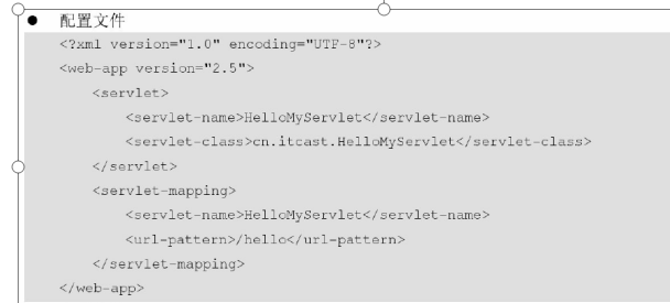 顾客搜索hello 服务器给他hellomyservlet的资源 他们需要一个媒介来配置这个东西让他们映射上,他们中间的媒介 就是xml