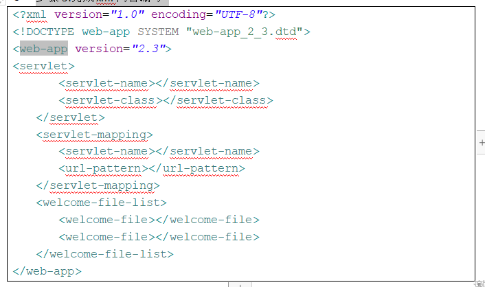 步骤1:创建web.xml文档,并将“web-app_ 2_ 3.dtd"拷贝相同目录下。